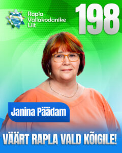 Head Rapla valla elanikud, tutvustame teile meie valimisliidu tegusaid kandidaate: JANINA PÄÄDAM